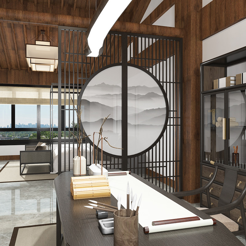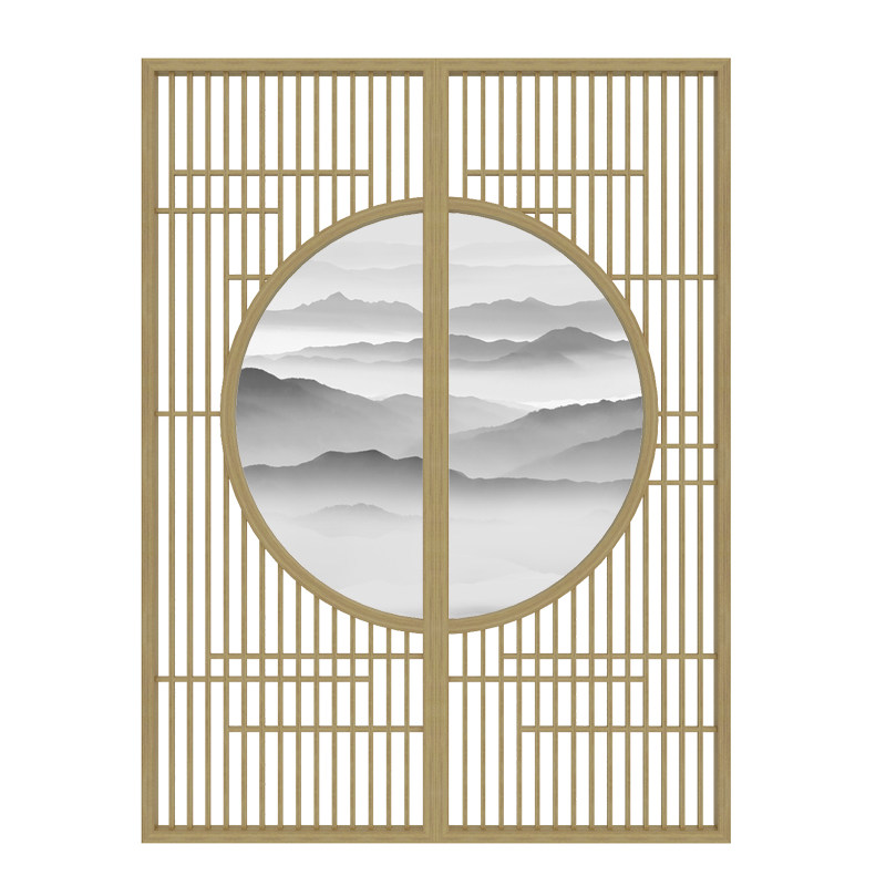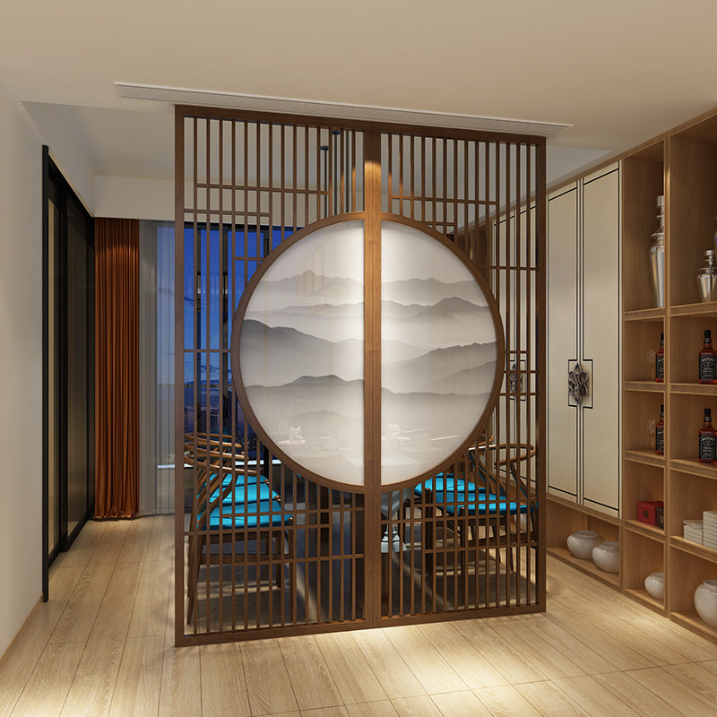 Modern New Chinese Screen Solid Wood Living Room Barrier Circular Fence Entry Design Customized Walnut Seat Screen