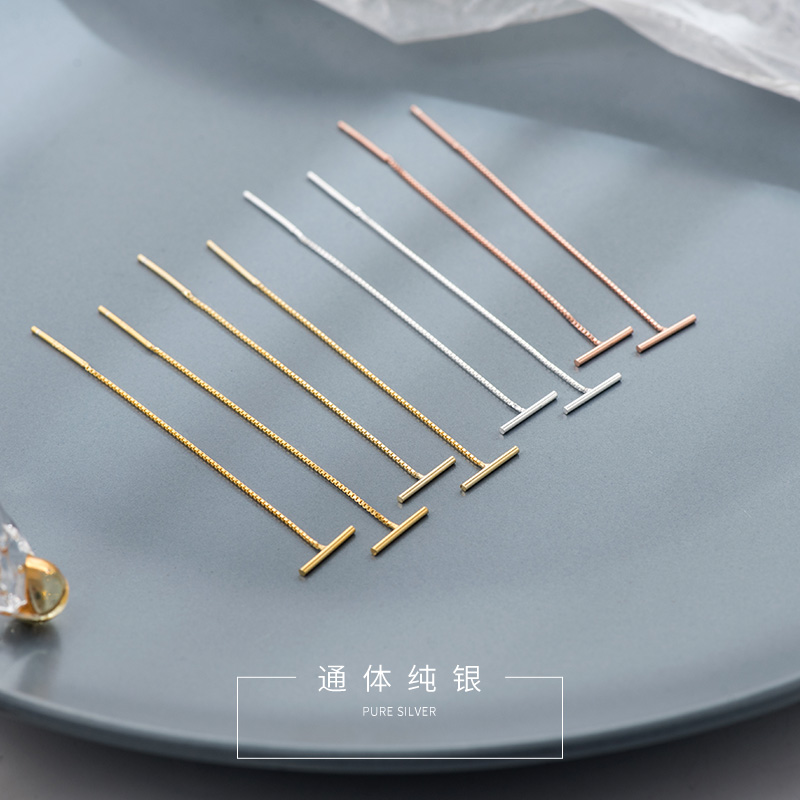 2021 new trendy sterling silver tassel earrings earrings female plated rose gold suitable for round face double ear pierced earrings