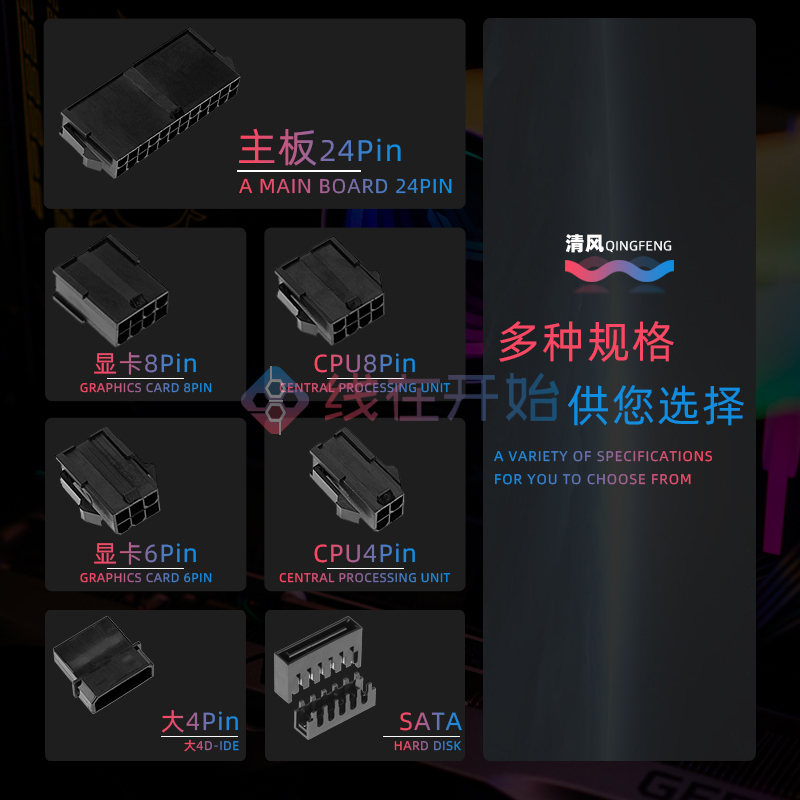 Motherboard 24pinCPU 4pin graphics card 8pinSATA pierce socket 90°SATA pierce socket 180°large 4P(D port IDE)