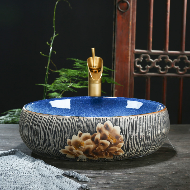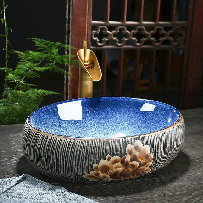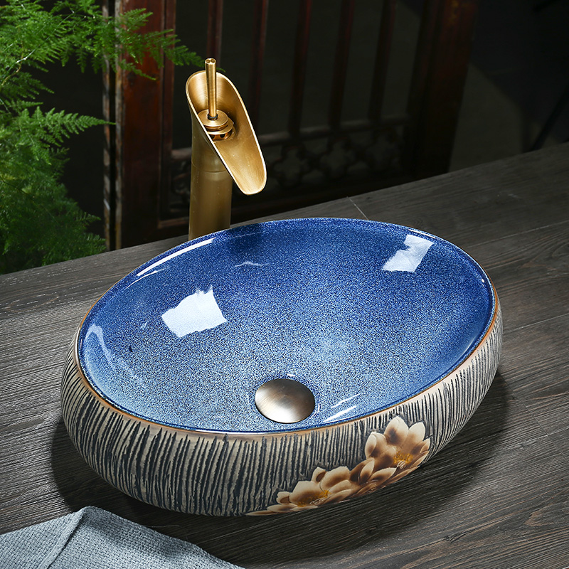 Retro Terrace Basin Balcony Washbasin Single Sink Oval Jingdezhen Ceramic Washbasin Make-up Room Art Terrace
