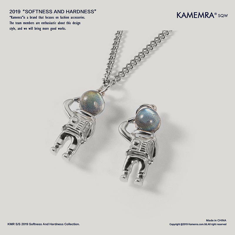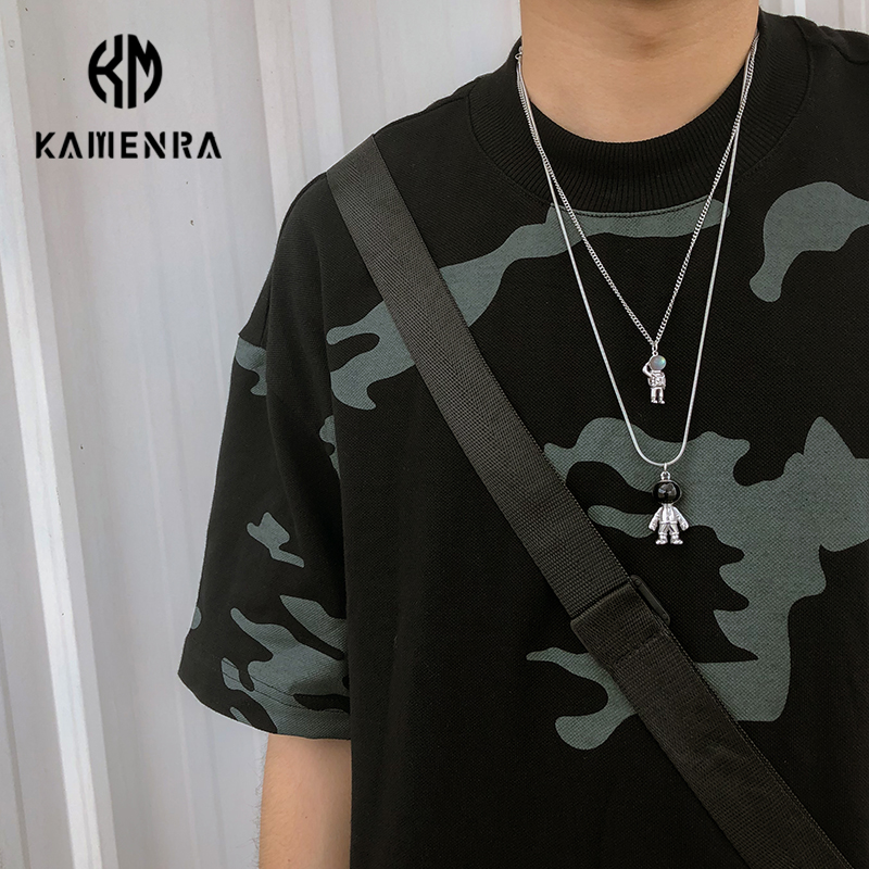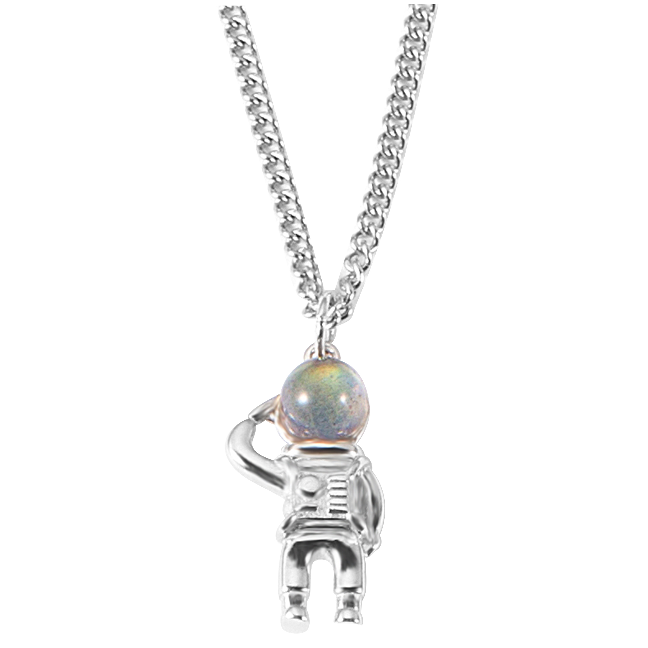 Pure Silver Original Tide Card Necklace Small Crowdmen Hip Hop 100 Hitch Crew Astronaut Pendant Female Couple Accessories