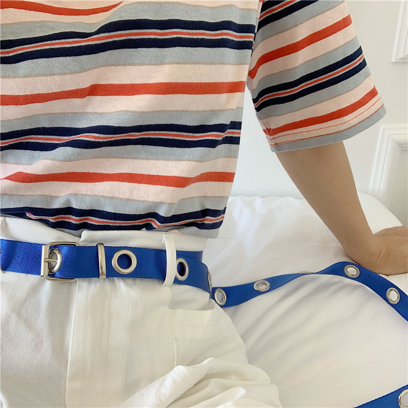 Korean popular a whole piece of hole-free canvas belt female narrow simple all-match hollow belt pin buckle