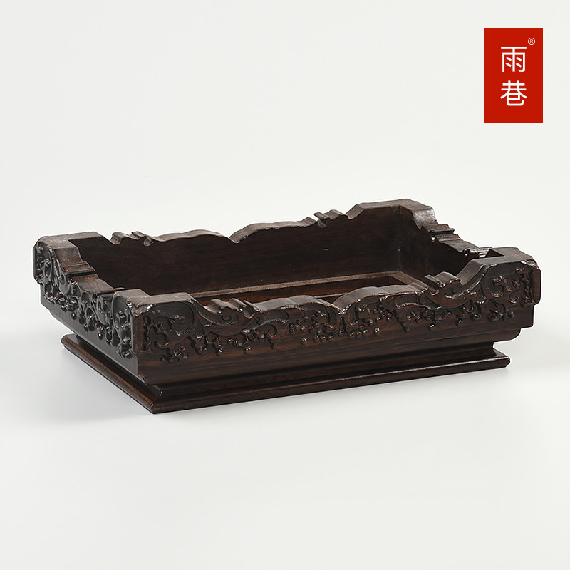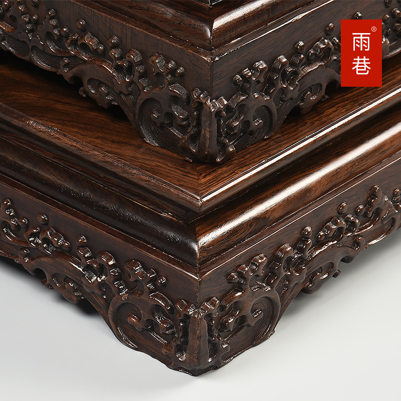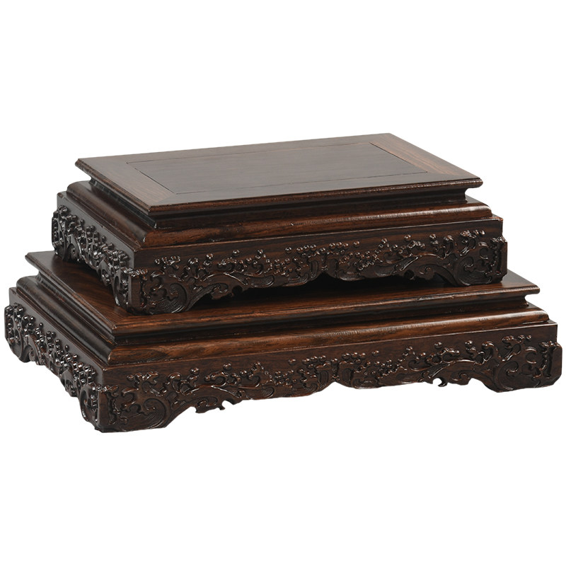 Black sandalwood Engraving Chi Stone Pendulum Piece Vintage Red Wood Buddha Vase Fish Tank Long Shelf Antique Solid Wood Base