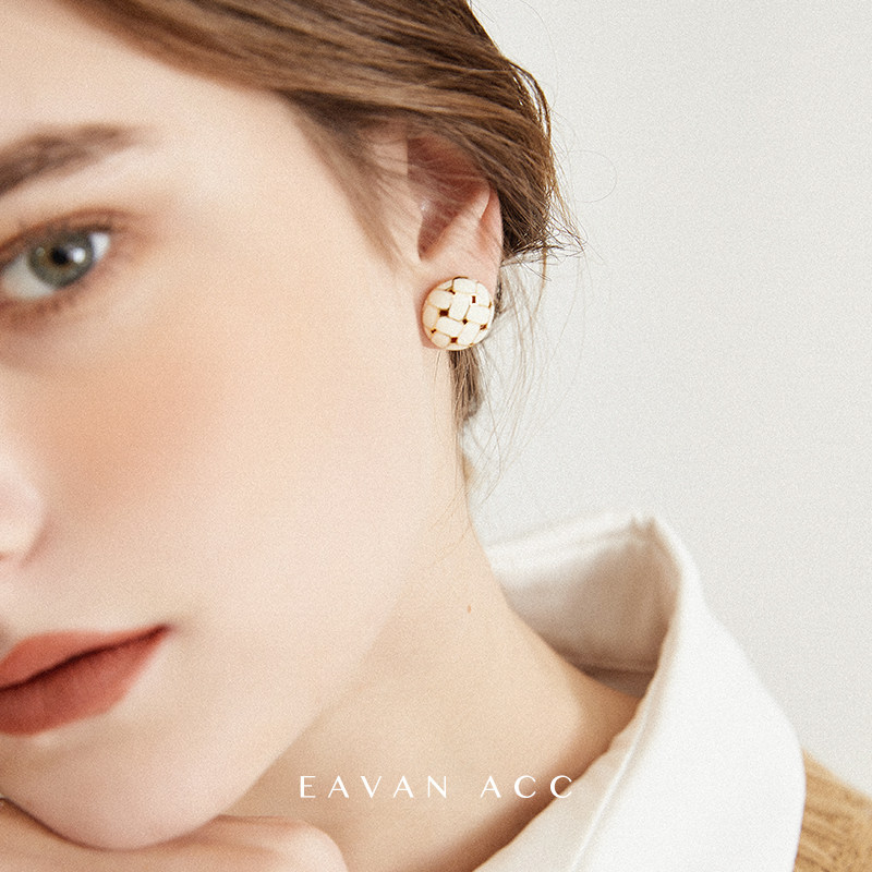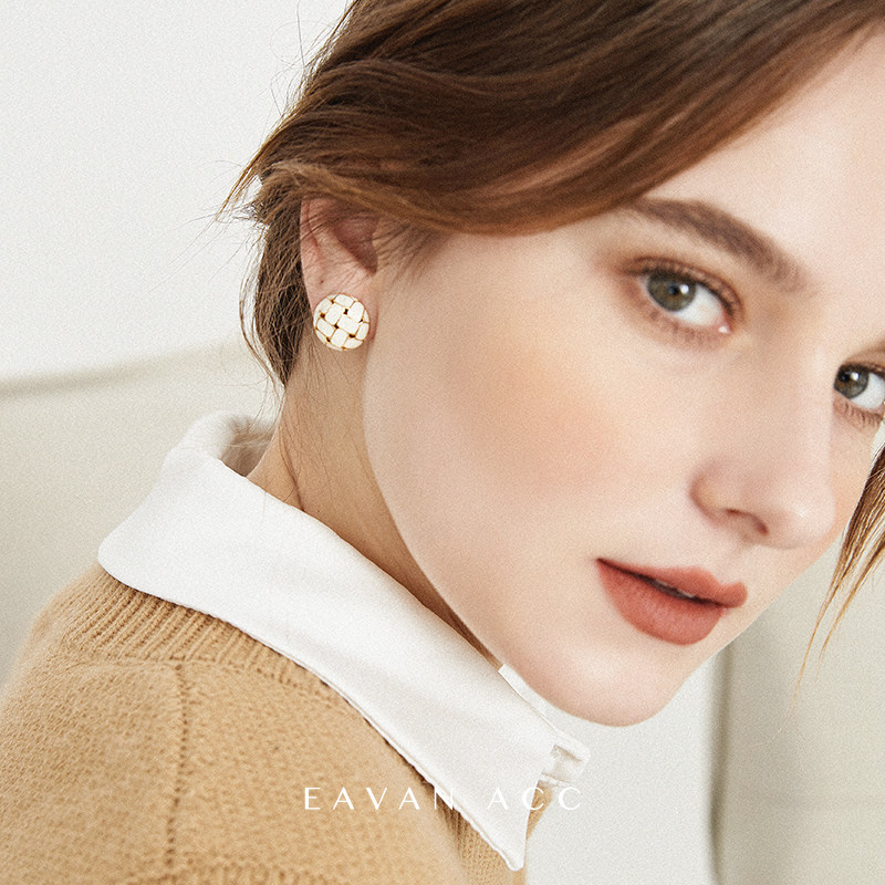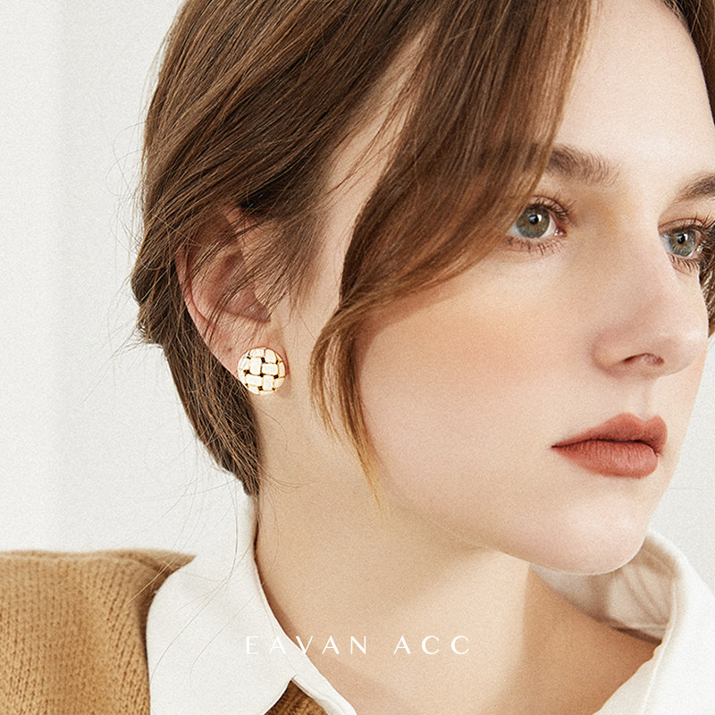 EAVAN ACC Margaret Enamel Plaid French Premium Vintage Earrings 2021 New Earren Ear Clip