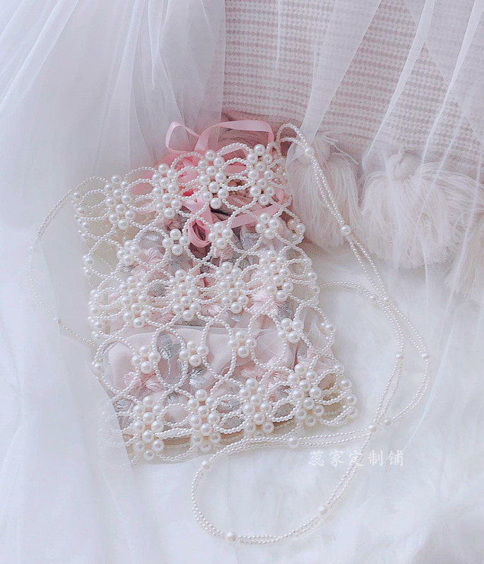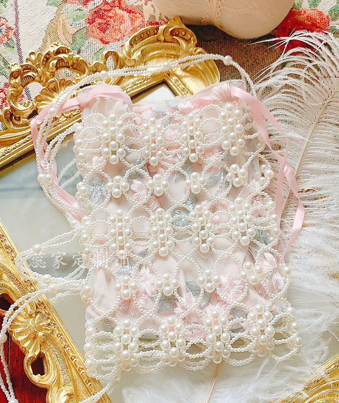 Handmade New woven niche design retro crossbody bead bag light luxury embroidery Cherry Blossom bag custom lace bag size