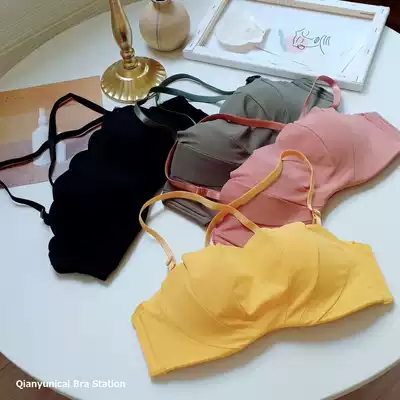 Petal chest cross back bra female small chest gathered without steel ring thin chest wrap anti-slip underwear set