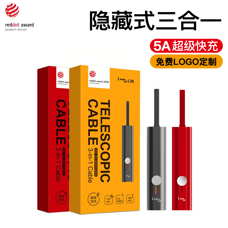 Fantasy 5A super fast charge scaling data line three-in-one multi-function one-tow three-car charger wire applies to Apple Huawei 66w Android Typec phones 6A three-head engraving custom logo