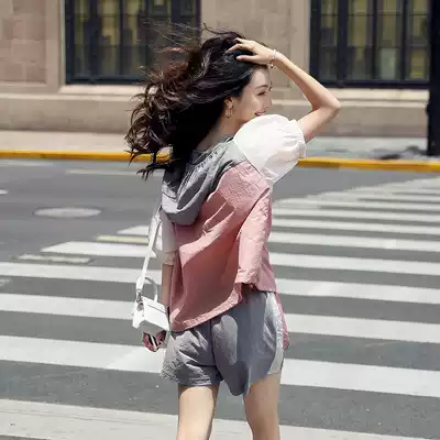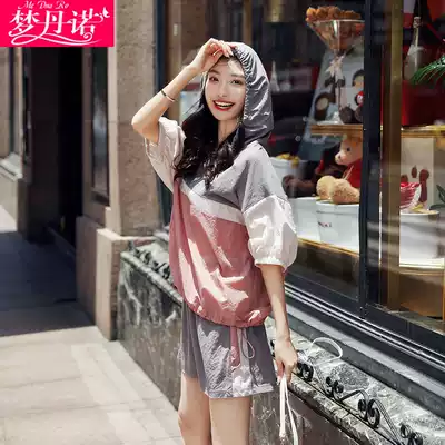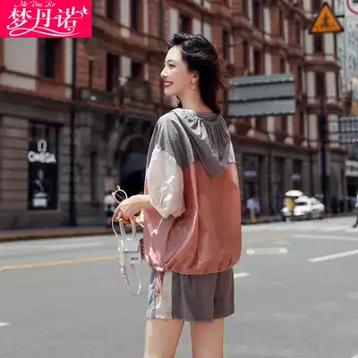 Sweater set women loose bf lazy wind thin model 2021 summer New ins sunscreen top shorts two-piece set