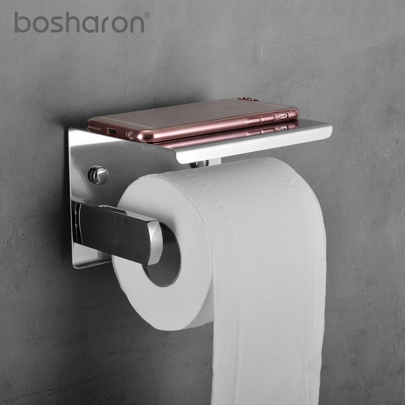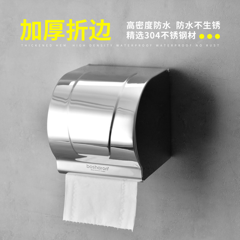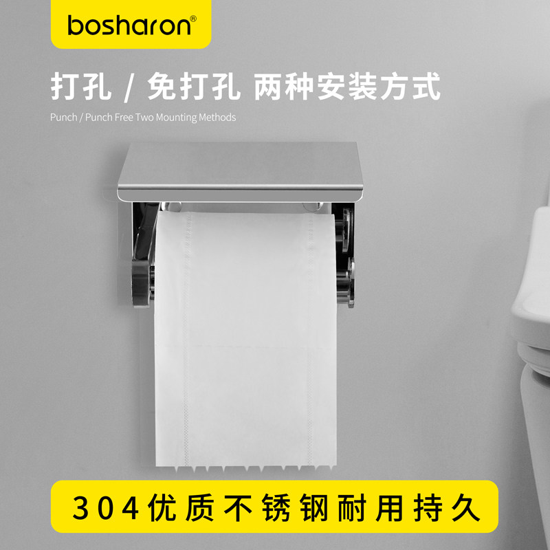 Powder room 304 stainless steel tissue box toilet paper holder Roll toilet paper box Non-perforated shelf Toilet small roll tissue holder