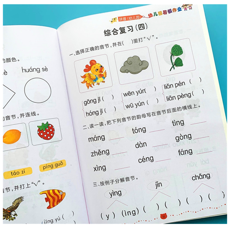 Kindergarten summer vacation homework Phonics math language exercise book Small-small convergence Large-medium-small-class extracurricular book Red book