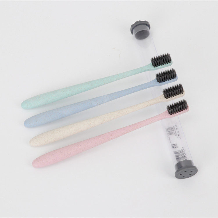 8 Wheat Bamboo Charcoal Soft Hair Ultrafine Adult Small Head Toothbrush Round Pipe Fitting Independent Packaging Travel Fit Dust Portable