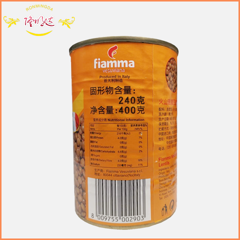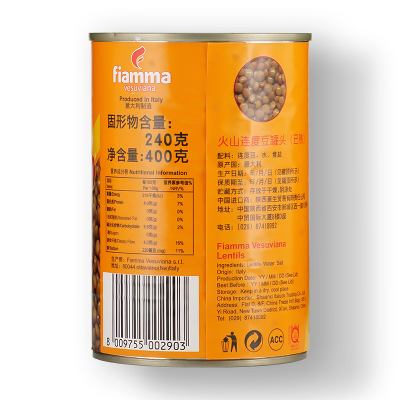 Italy imports Fiamma Volcano Cooked beans 400g small lentils ready-to-eat meals
