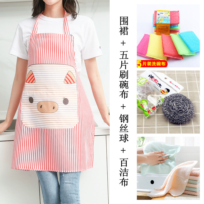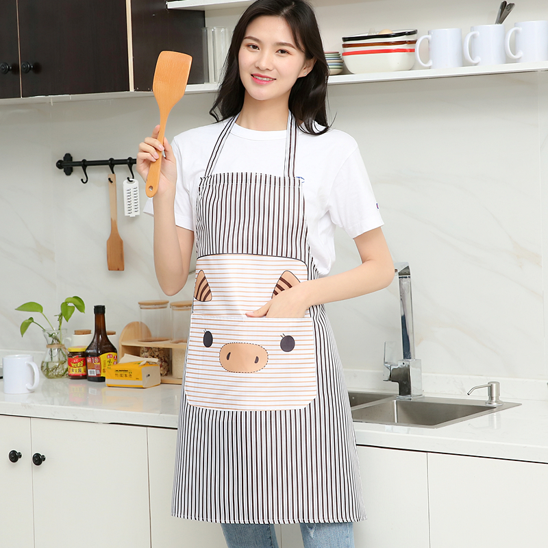 Han Edition Fashion Apron Female Cute Kitchen Cooking Workwear Cotton Cotton Waist Cartoon Thicking Oil Prevention Household