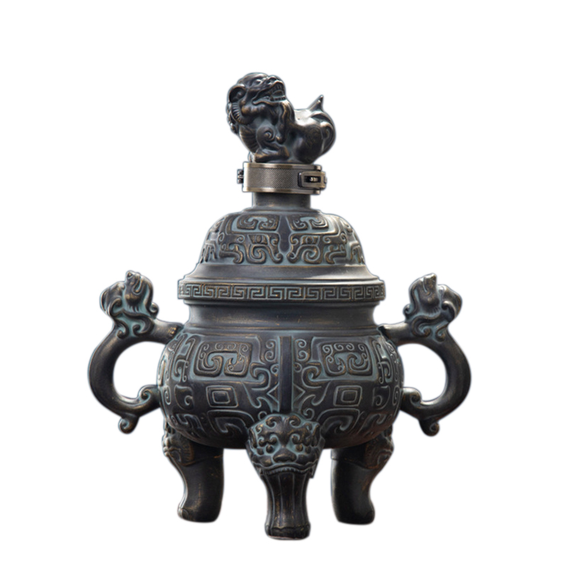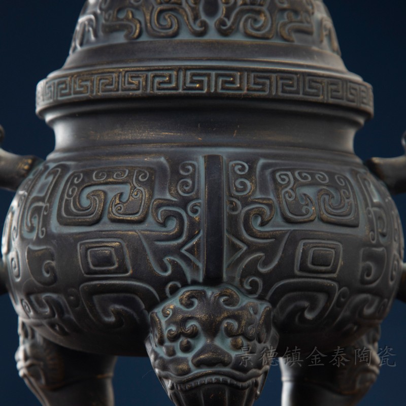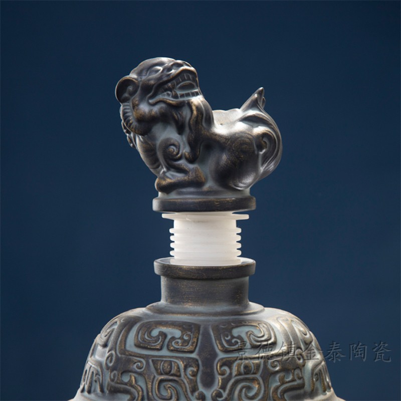 Jingdezhen ceramic wine bottle 4 kg imitation bronze antique seal four pounds of lion ear three-legged ding wine bottle wine jar