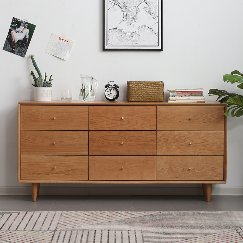 "Cloud End Nine Bucket Cabinet" Nordic Solid Wood Bucket Cabinet Bedroom Day Style Furniture Storage Cabinet Cherry Wood Storage Side Cabinet