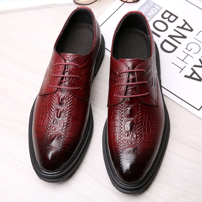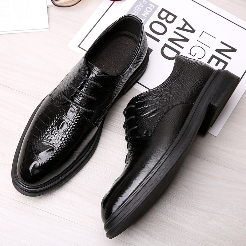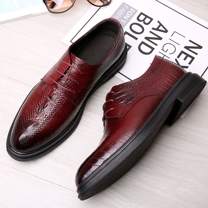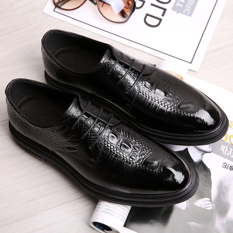 DTN Bullock Men's Leather Shoes Business Leather Soft Sole Casual Korean Version Trend Versatile Crocodile Pattern Wedding Shoes - Taobao
