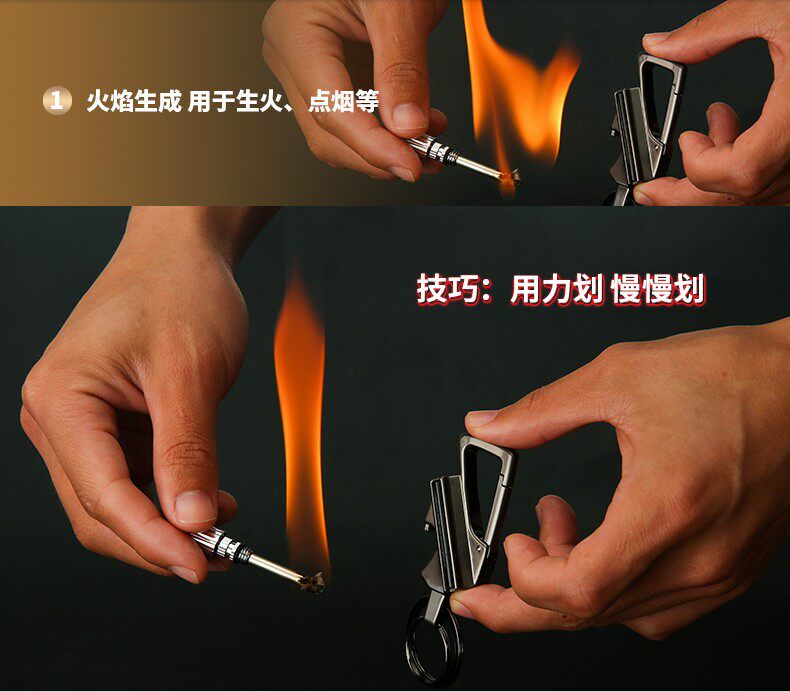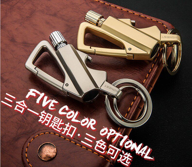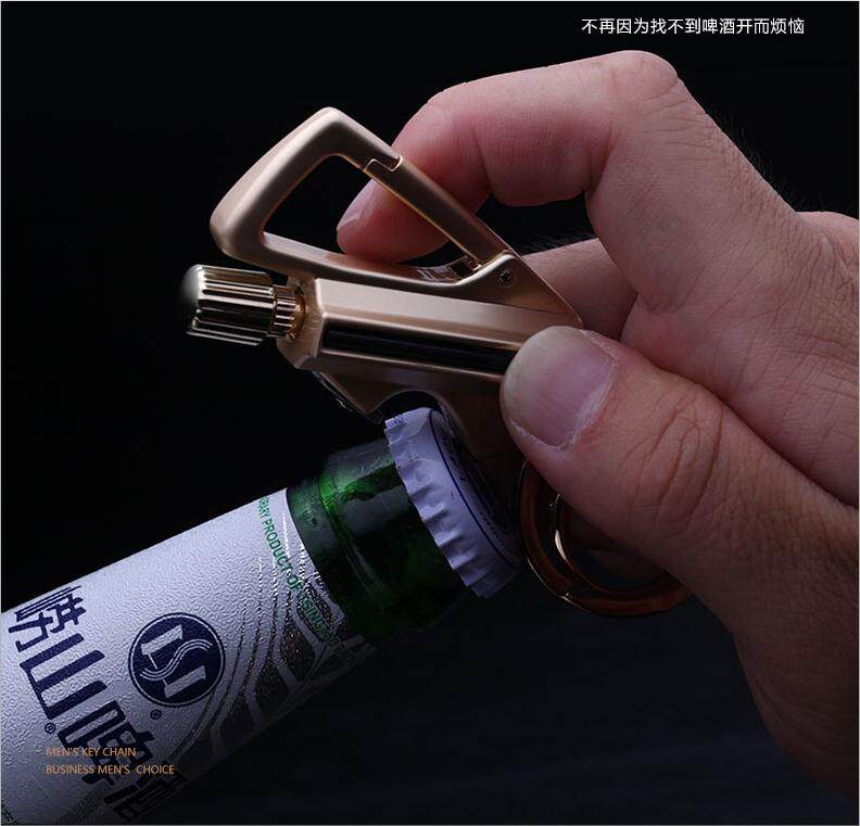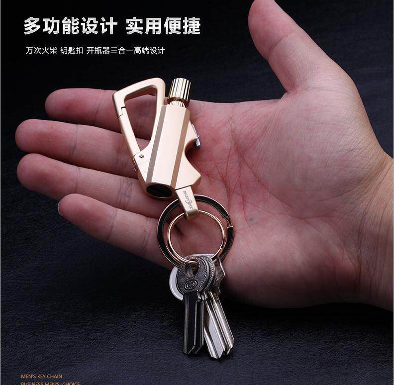 Three-in-one multifunction bottle opener ten thousand times matchmaking key button male waist hanging lighter car pendant men's gift