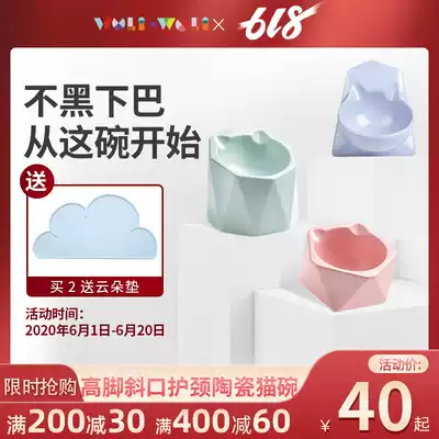 Canned ceramic cat bowl canned snacks cat food bowl oblique mouth protection cervical high foot anti-knock cat bowl drinking basin