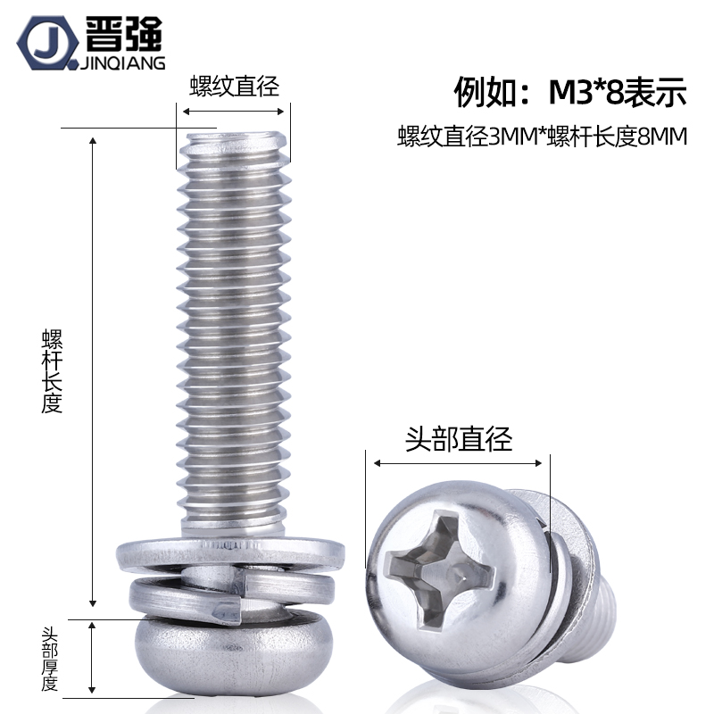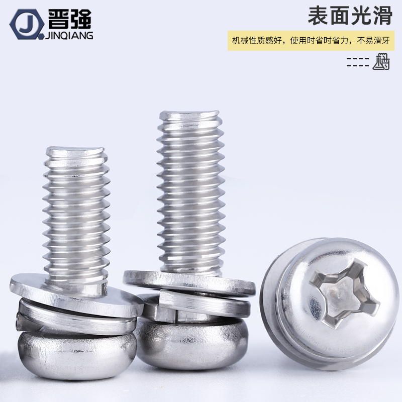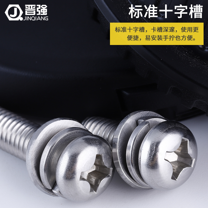 304 stainless steel cross round head combination screw nickel-plated flat washer spring washer three combination screw black pan head screw