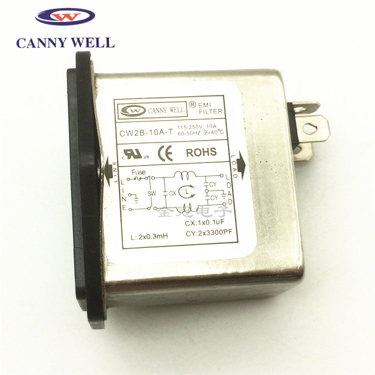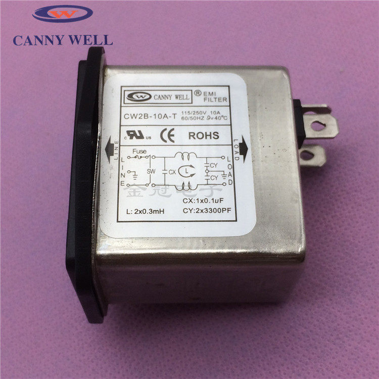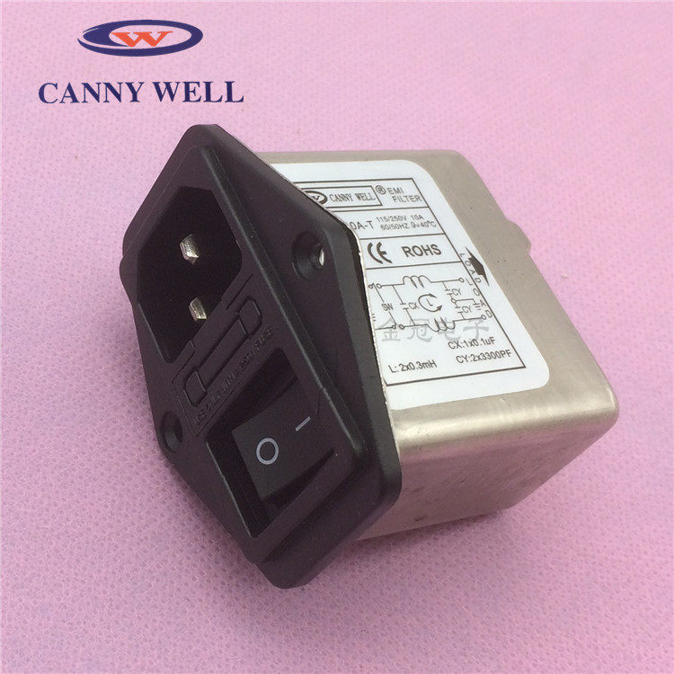 CANNYWELL Power Filter 3-in-1 Socket Safety Lamp CW2B-06A 10A-T Black Switch