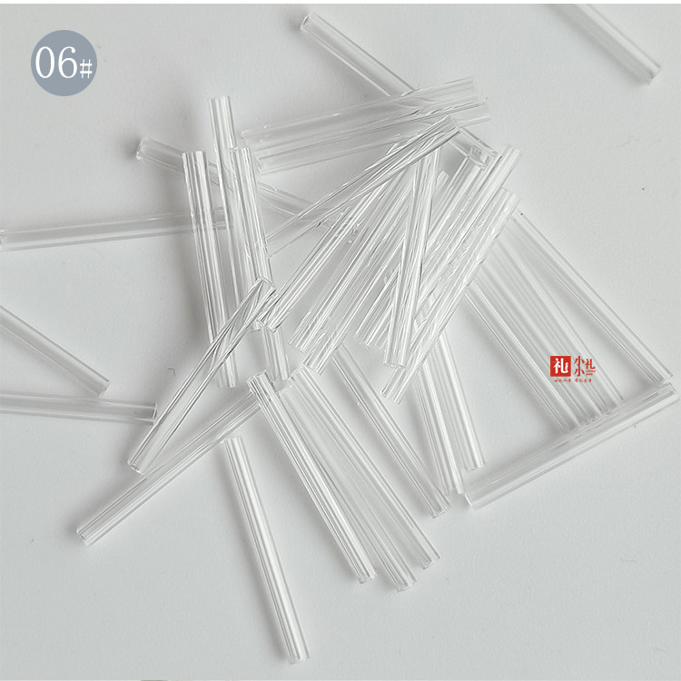 1# White Silver Pipe Beads 11 0*15mm2# White Silver Irrigated Tube Beads 11 0*20mm3# White Transparent Tube Beads 11 0*9mm4# White Transparent Tube Beads 11 0*12mm5# White Transparent Tube Beads 11 0*15mm6# White Transparent Tube Beads 11 0*20mm6 in One Set of White Transparent Tube Beads