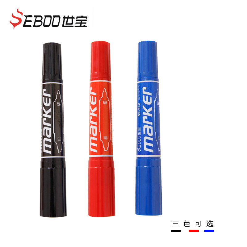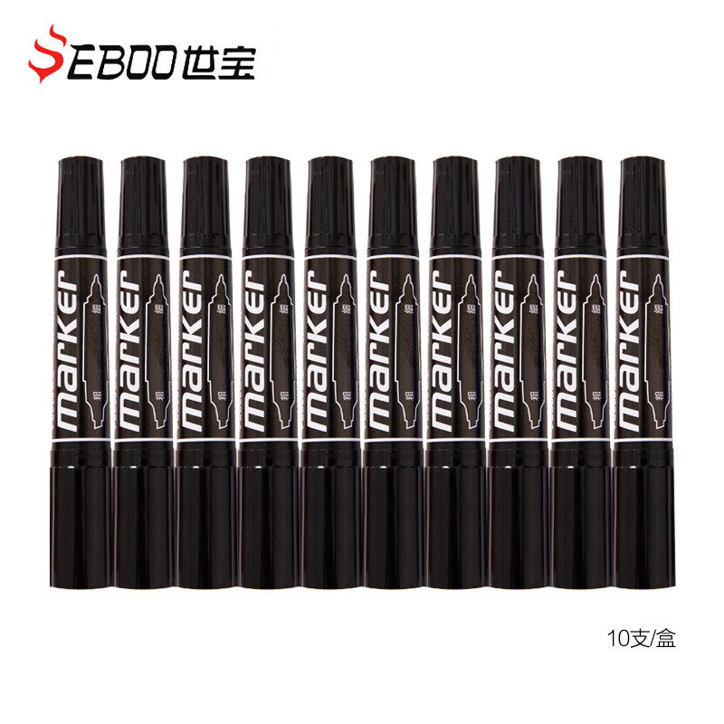 Shibao strange pen marker pen Double-headed large capacity oily pen Waterproof quick-drying signature pen Thick pen does not fade Mike pen Water-based black thickness two-end paint pen Red marker box pen