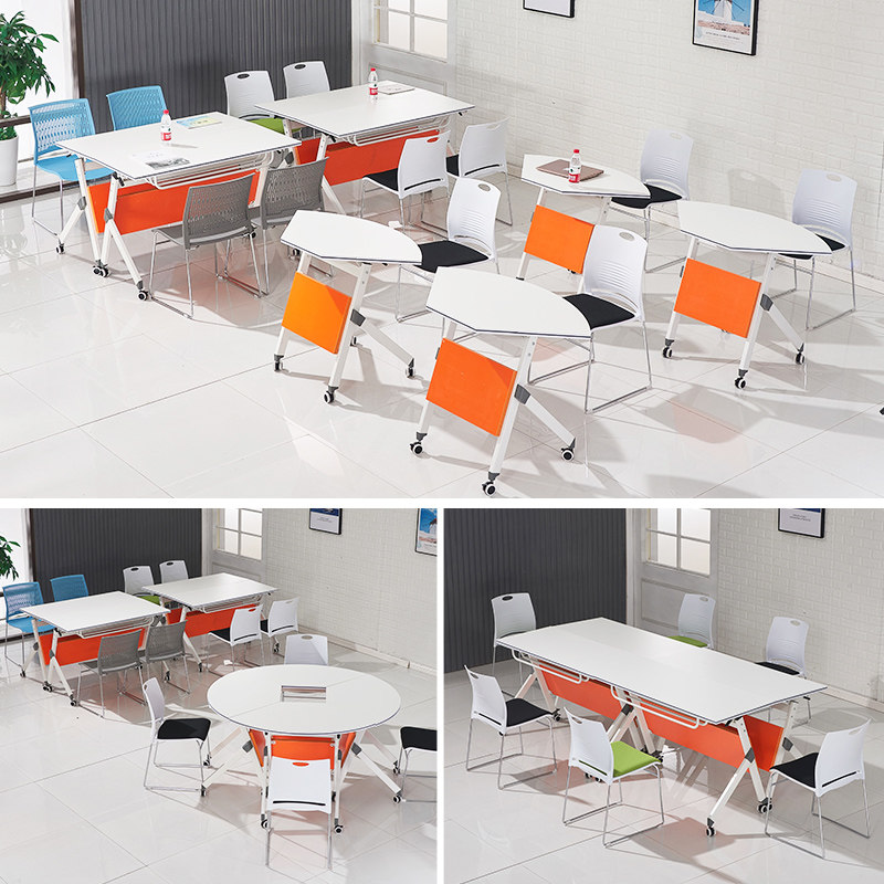 Folding training table conference table long strip can be spelled out with a wheeled desk education tutoring class institutional table and chair combination