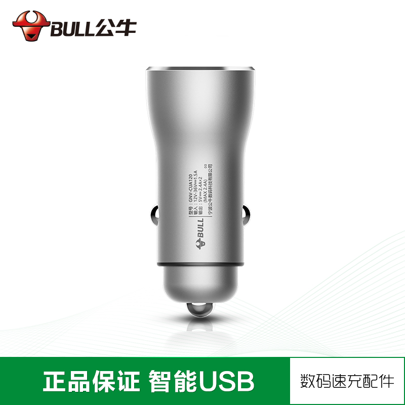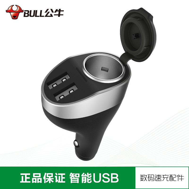 Bull On-board Charger Car Cigarette Lighter Style Car Charging Dual USB Intelligent Quick Charging Head Multifunction One Tug 2