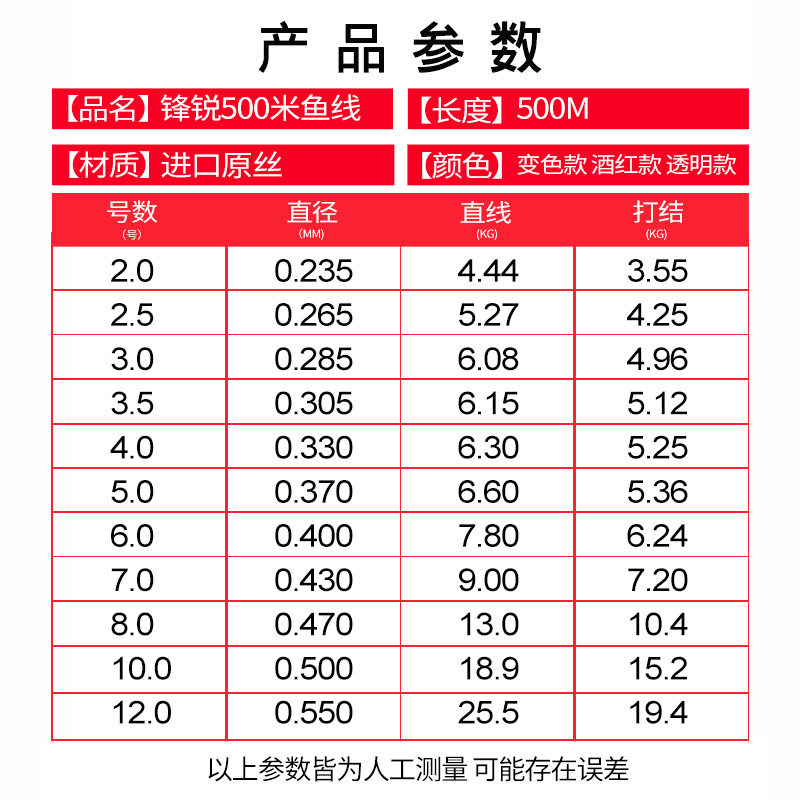 Wine red 500 m transparent colour 500 m colour changing line 500 m