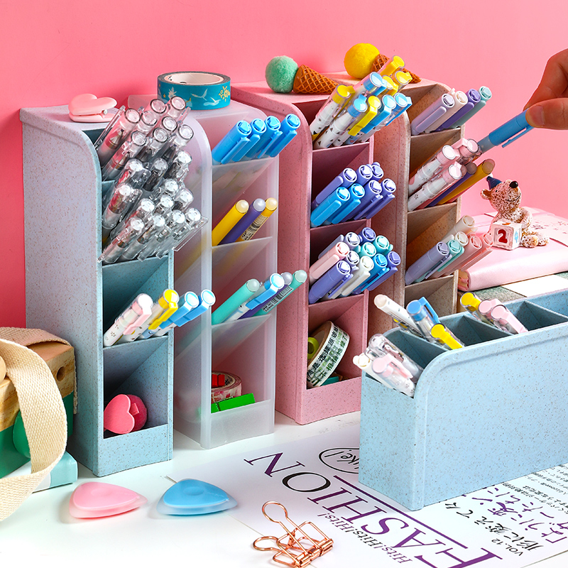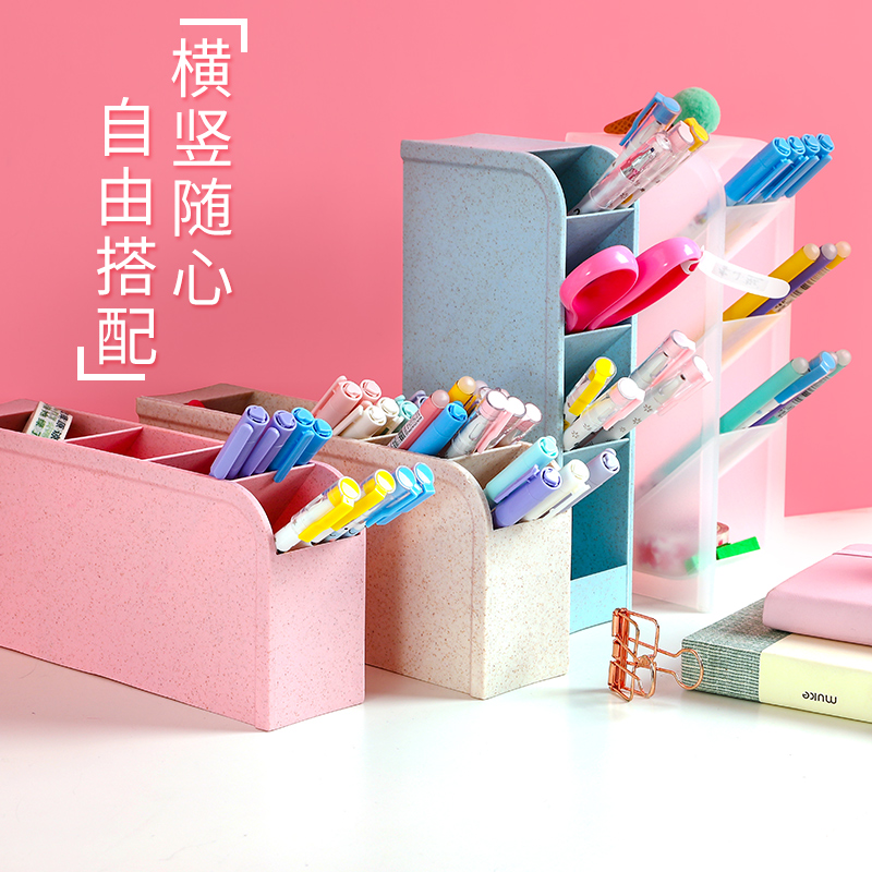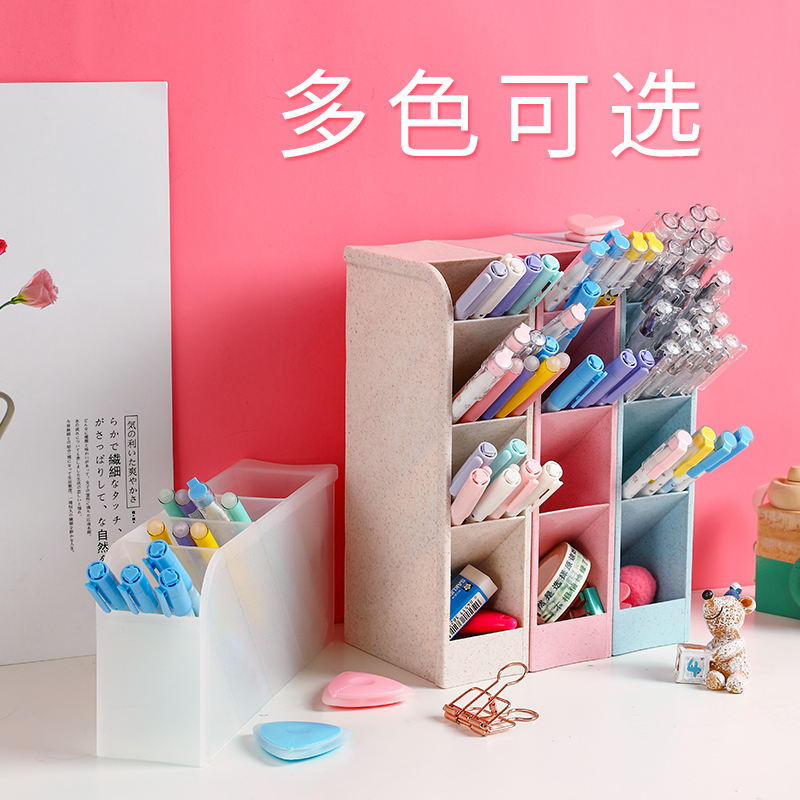 Inclined plug-in pen holder ins storage box female creative fashion cute Nordic transparent multi-functional desktop girl heart elementary school students European-style net red children's decoration large capacity makeup brush pen barrel large