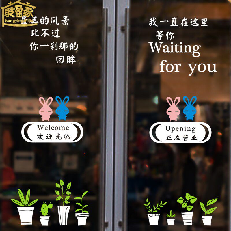 Welcome to the door stickers Personality Creative Fields Garden Potted and painted Café Milk Tea Shop Window Glass Door Decoration