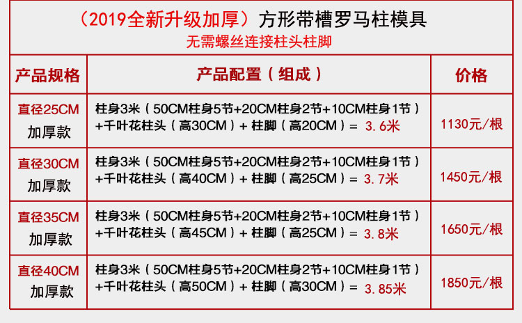 Manufacturer Direct sales European-style Roman column mold construction formwork plastic plastic steel cast-in-place balcony gate Cement square