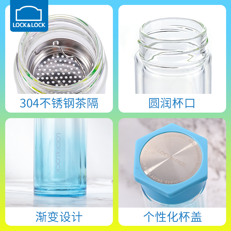 Music Buckle Music Buckle Glass Water Glass Double Layer Portable Tea Cup Brief Frescoed Transparent Mug Girl 350ml Summer