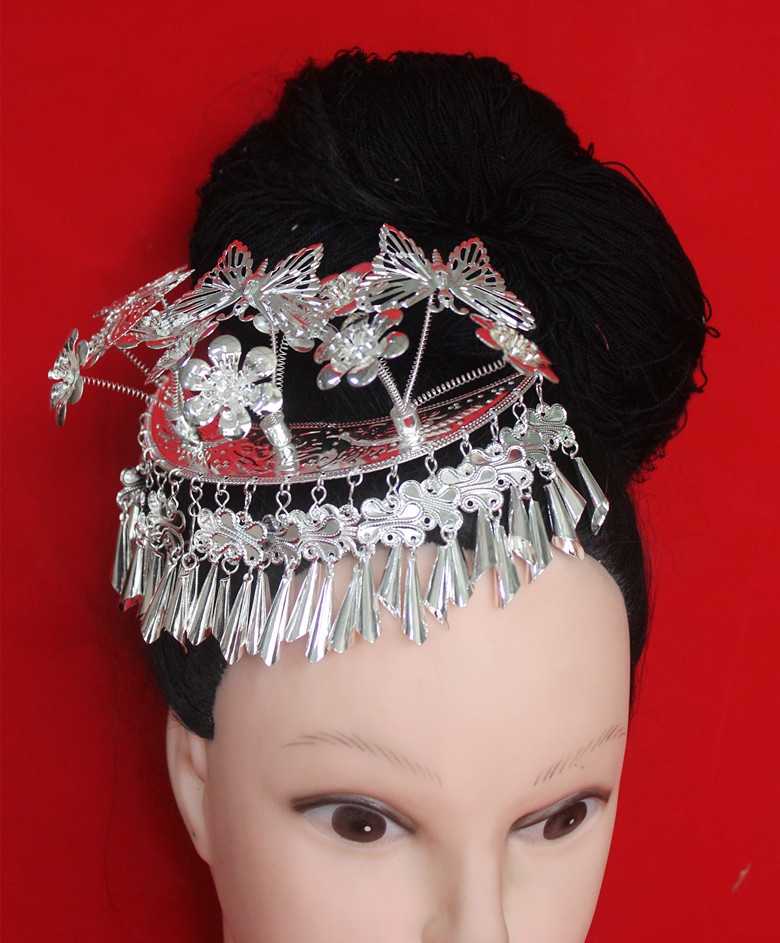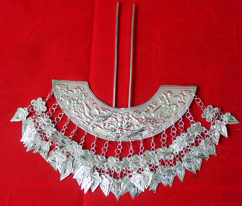 Miao ethnic silver headdress headdress hairpin half Miao silver jewelry national dance performance wearing headdress hairpin