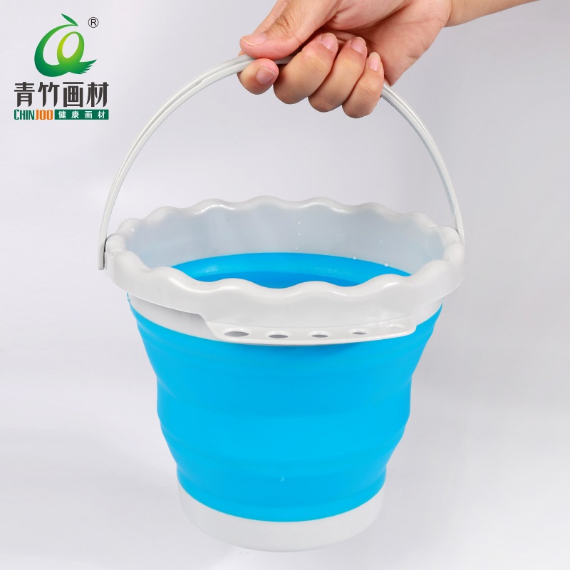 Green bamboo painting material folding silicone art wash pen holder bucket large gouache watercolor painting paint special bucket painter rubber plastic foldable telescopic multifunctional paint washing bucket