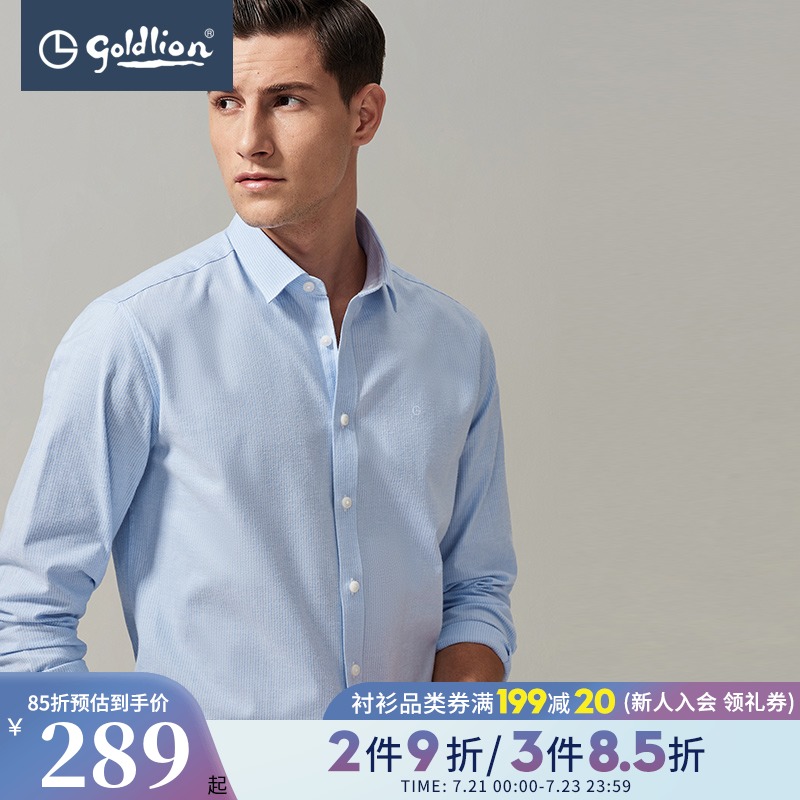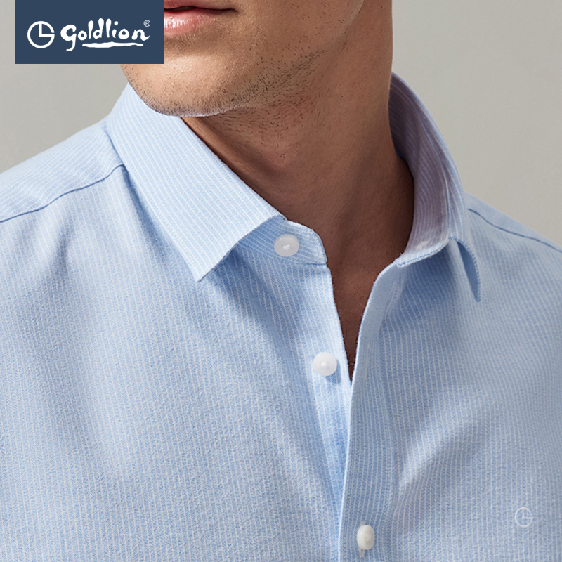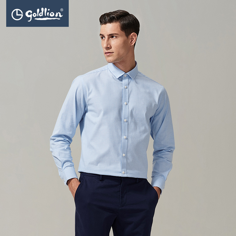 Jinlilai spring and Autumn men's cotton delicate soft fashion vertical stripe casual long-sleeved shirt (Hui)