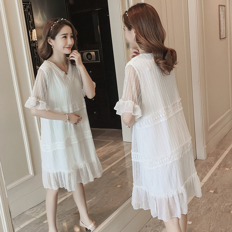 Anti-radiation maternity dress summer apron sling fashion mid-length lace fairy pregnancy dress
