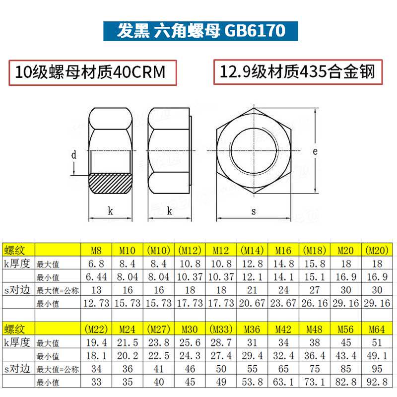 12 9 level hexagonal nut 12 grade high-strength screw cap GB6170 M6M8M10M12M16M20M24M36