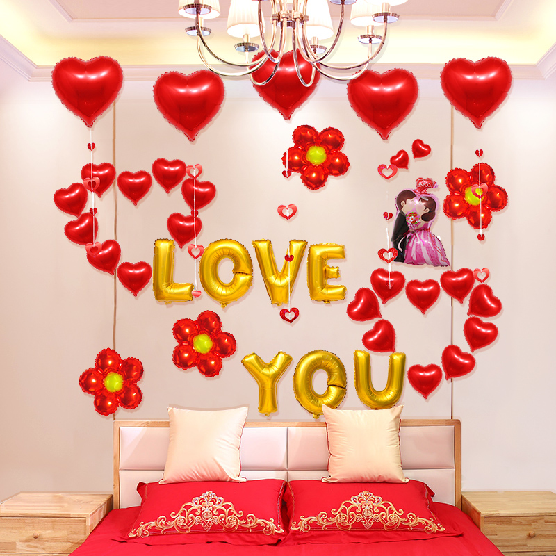 Thizer Wedding House Decoration Arrangement Aluminum Foil Balloon Suit Wedding Supplies Big Full New Room Bedroom Background Wall Sticking Balloon