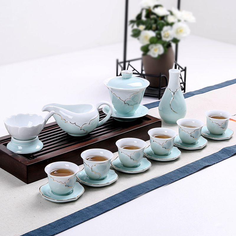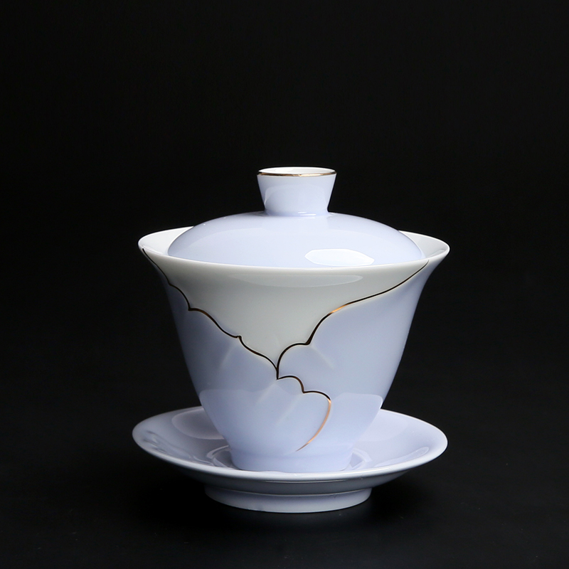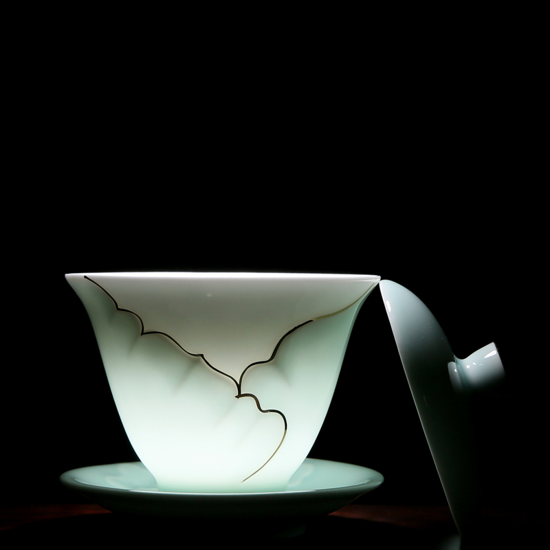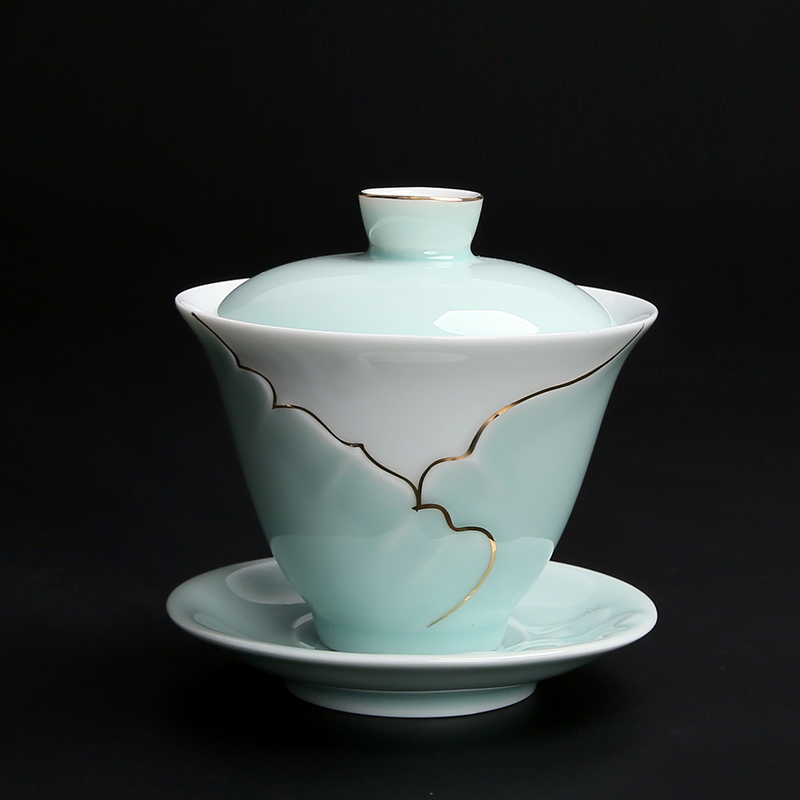 Hand-painted ceramic gold-painted celadon cover bowl Teacup Respect tea bowl Sansai bowl Large hand-caught tea bowl Kung Fu tea set