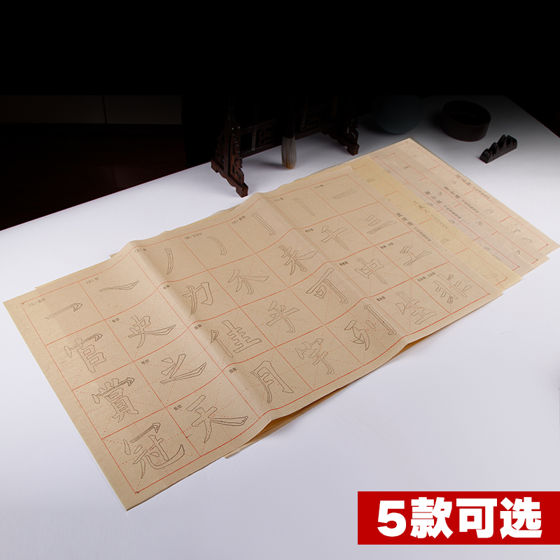 Cao Quanbei (writing in red with strokes) Liu Gongquan (writing in red with strokes) Ouyang Xun (writing in red with strokes) Wang Xizhi (writing in red with strokes) Yan Zhenqing (writing in red with strokes)