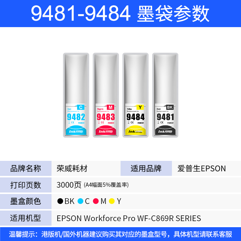 E9481 black BK cartridge E9482 blue C cartridge E9483 red M cartridge E9484 yellow Y cartridge four-color set to buy four-color two sets of matching waste ink