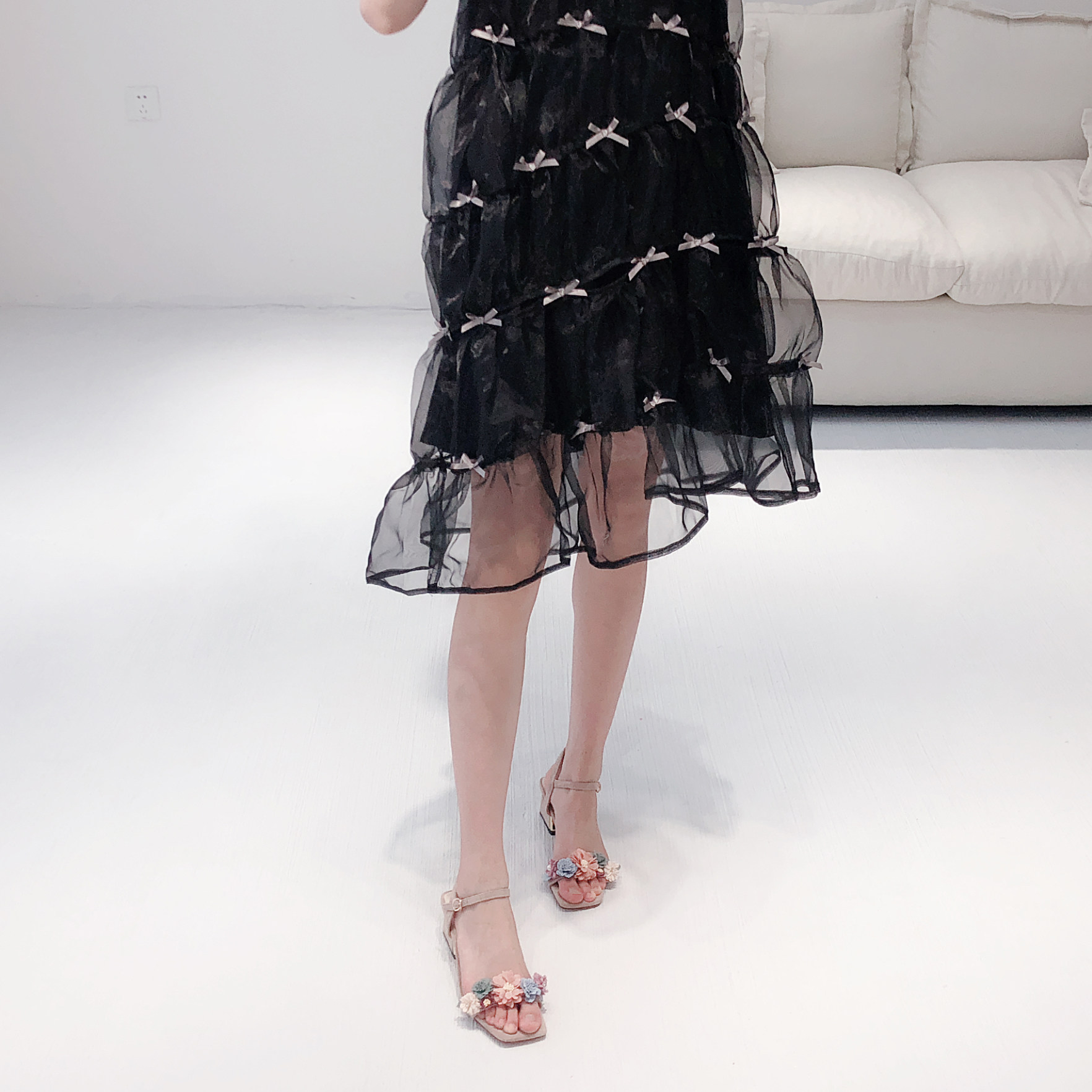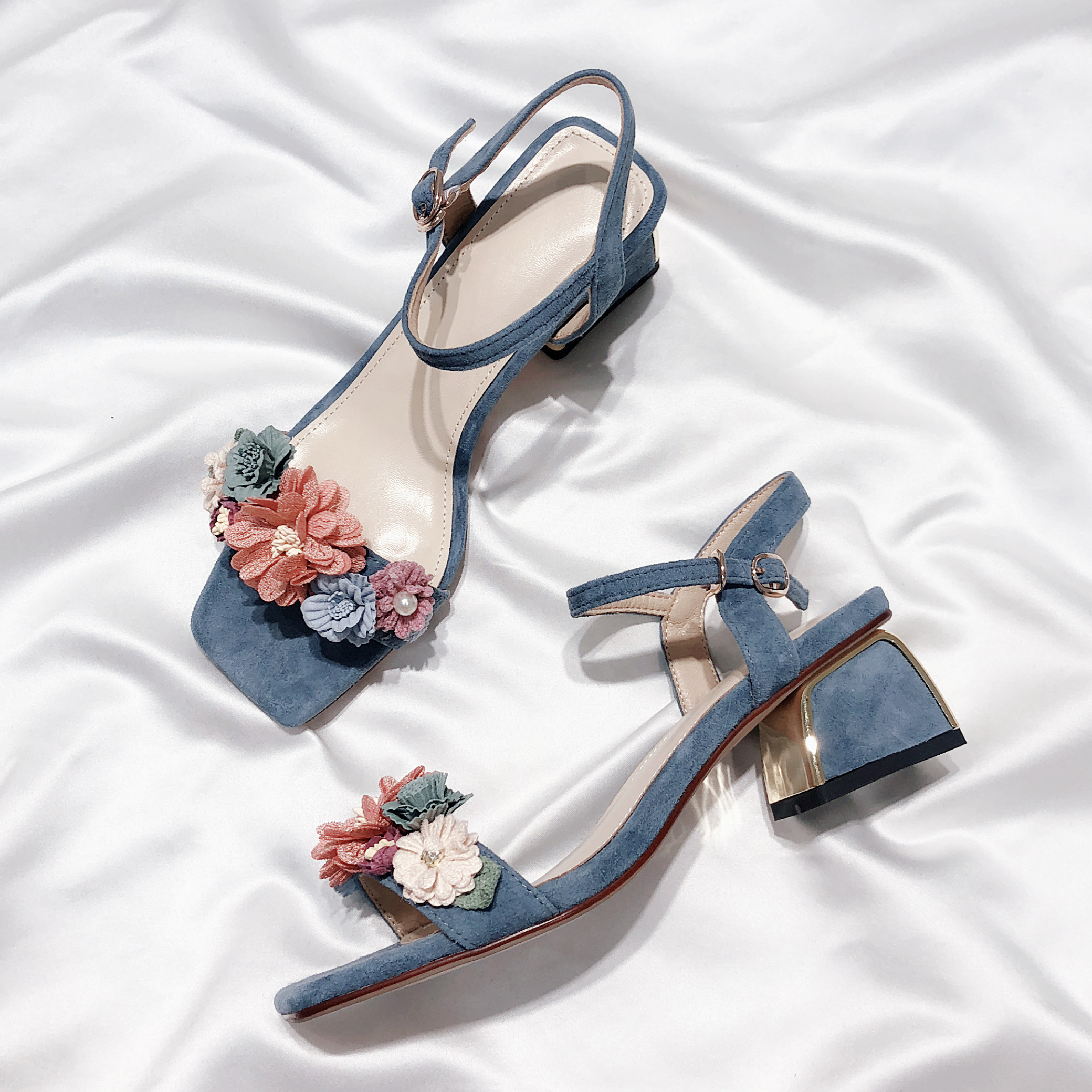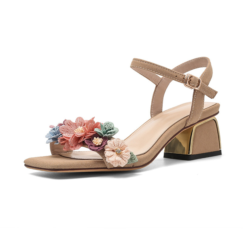 Senyu Haixiang 2022 new leather flower thick heel with fairy high heel holiday Korean version sandals for women