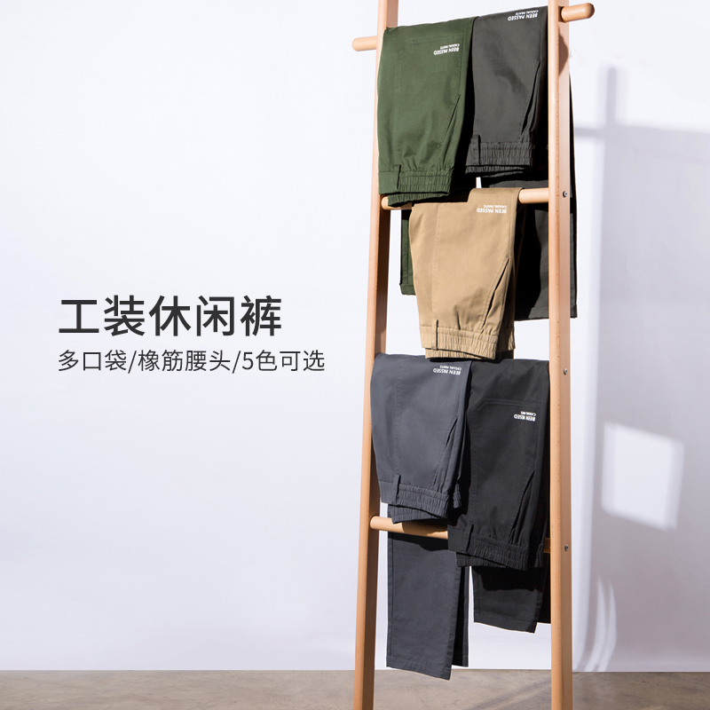 Camel men's casual pants men's summer new men's pants trend wild small feet slim black tooling pants