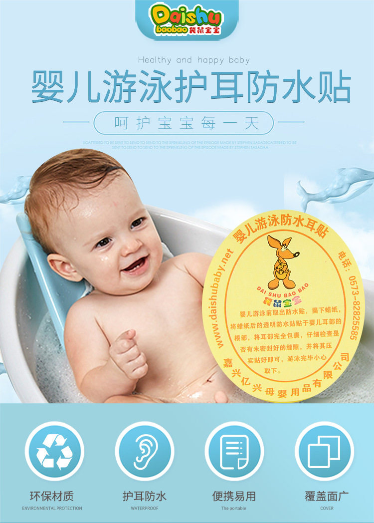 Baby swimming waterproof ear stickers Adult baby shampoo cap ears anti-water earcups Bath supplies Daquan