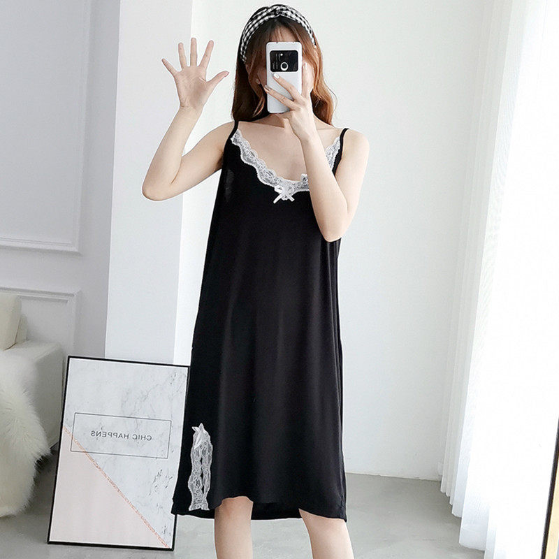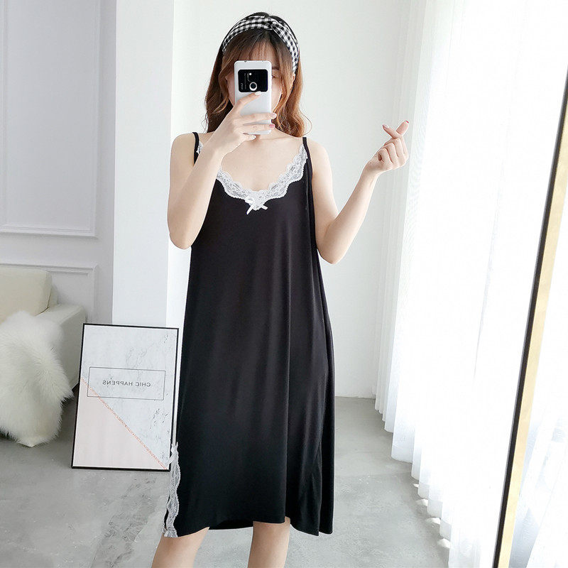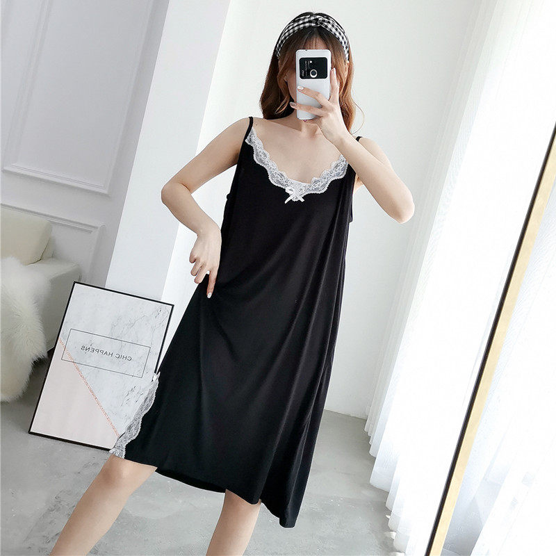 Summer thin Modal nightdress sexy lace plus fat size medium long suspender fat MM200 pounds home clothes woman