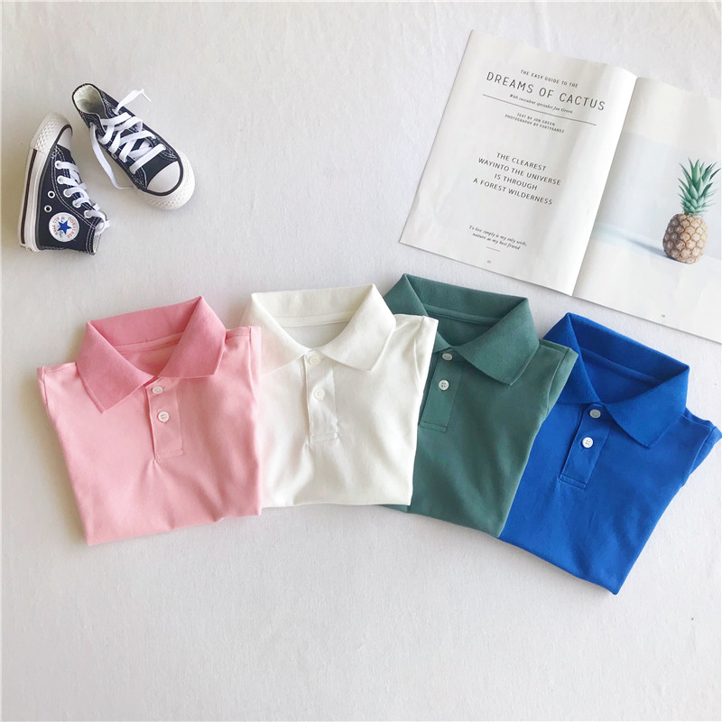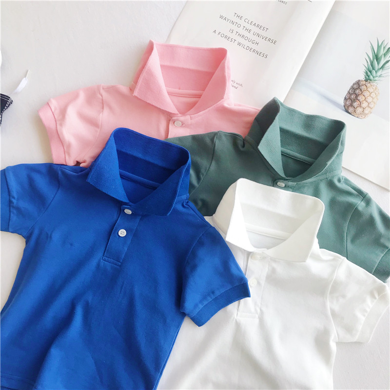 Summer boys and girls pure cotton polo shirts children white shirts tie T-shirts baby day is simple 6