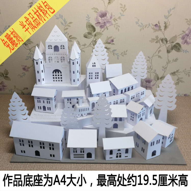 Semi-finished solid paper art forms paper sculpture castle building model parent-child folding paper handmade DIY homework material bag