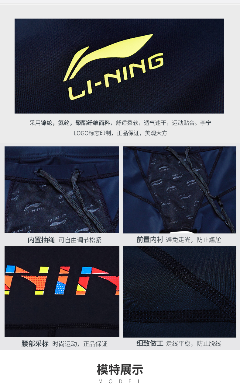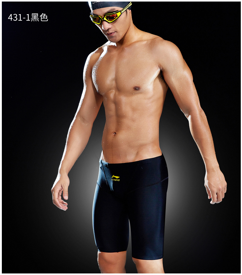 Li Ning swimming trunks men's anti-embarrassment swimming equipment men's loose version of men's swimming trunks professional swimming trunks men's five-point pants