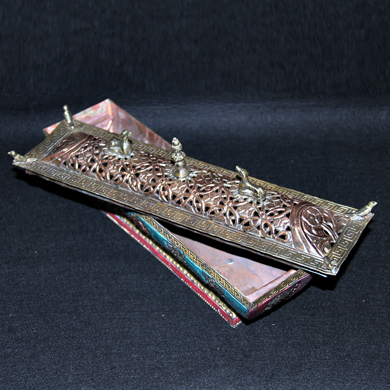 Tibetan Buddhist furniture Tibetan Nepalese pure copper hand-inlaid turquoise home for Buddha eight auspicious lines lying incense burner